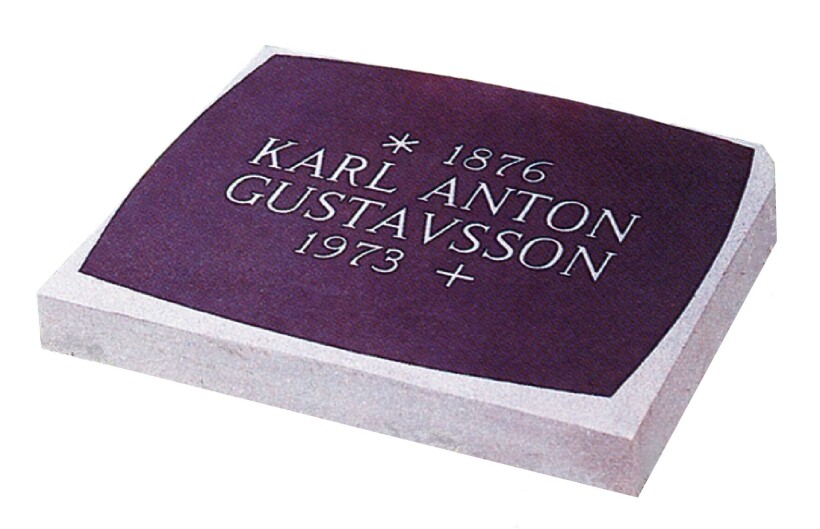 Ovansida polerad, avfasning och kanter grovslipade. Text försänkt stil 56.